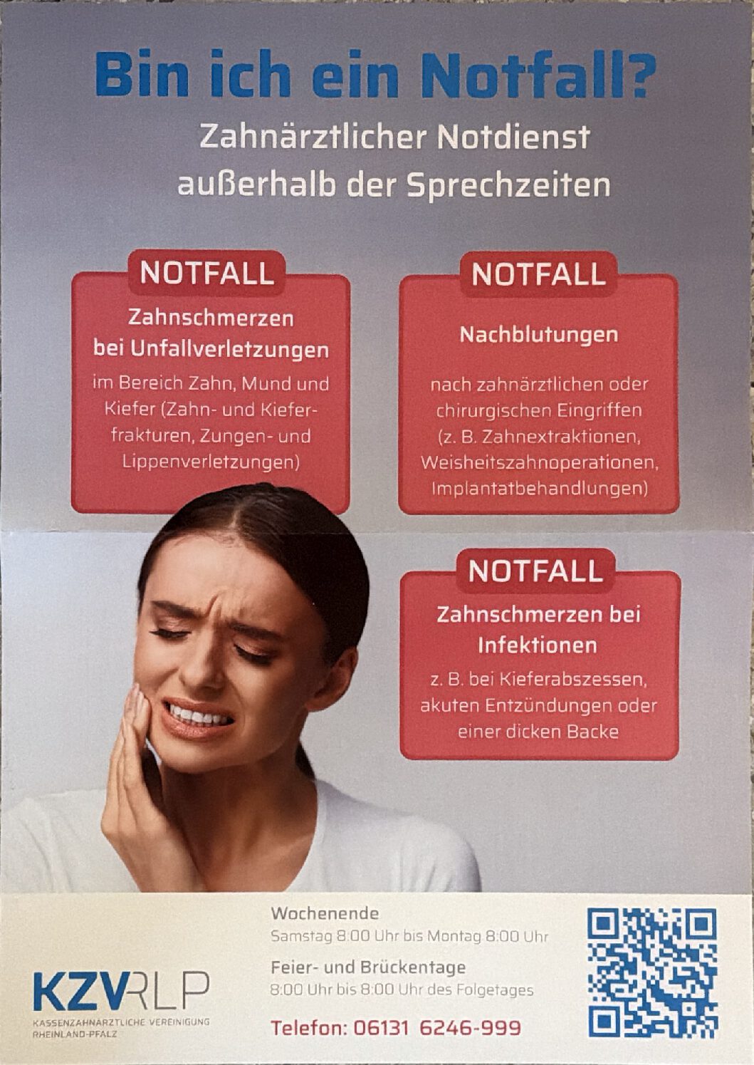 Sie erreichen den zahnärztlichen Notdienst unter der Telefonnummer: